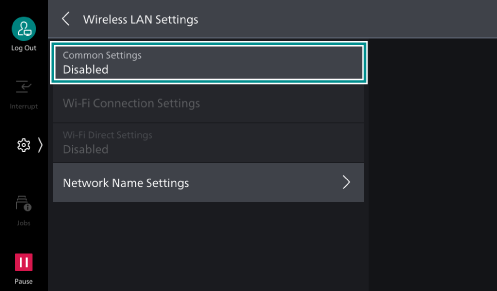 Displays the name of the network identified by Wi-Fi Direct. Alphanumerics up to 23 characters can be entered for the section that follows “DIRECT-”. The name set here will be displayed when selecting the network to connect to from a mobile device.