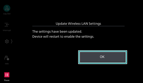- Confirm that the settings updated at the screen on the machine and then tap on [OK].