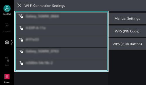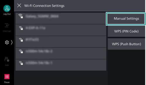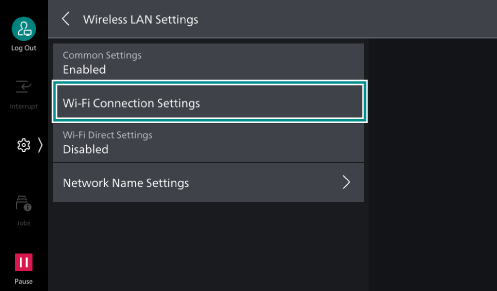 - Open the Wi-Fi settings screen and select the SSID of the machine in connection.