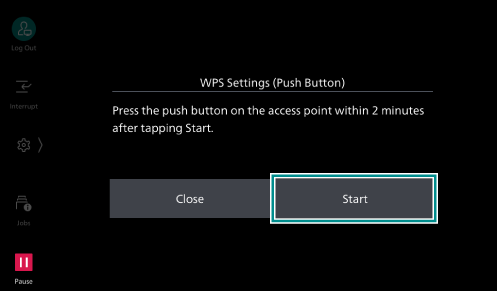 - Tap on [Start] and then press the WPS button on the wireless LAN access point within 2 minutes.
