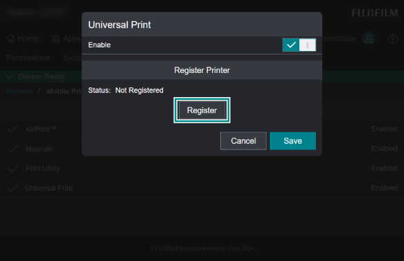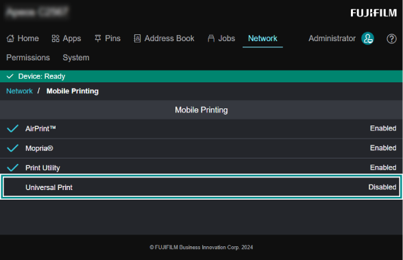 Universal Print is a cloud printing service provided by Microsoft Corporation. You can print with the machine everywhere using the Microsoft Entra ID authentication without installing any printer driver or specific software.