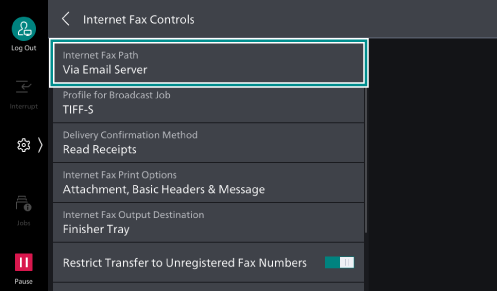 - Tap on [Internet Fax Path].