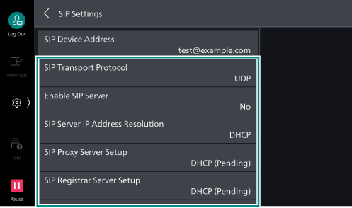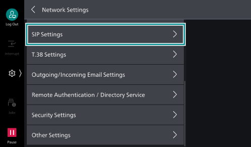 - Tap on [SIP Settings] on the [Network Settings] screen.