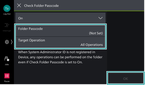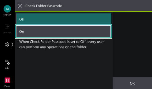 Specify the operations that require a password when using the folder.