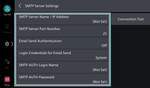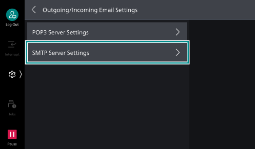 IP Address ] set a server that does not require authentication.To clear the password being set, on the [SMTP AUTH Password] screen, with nothing entered, tap on [Next] > [OK].