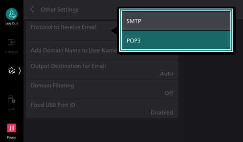 - Tap on [Protocol to Receive Email] and from the displayed menu select [SMTP] or [POP3].