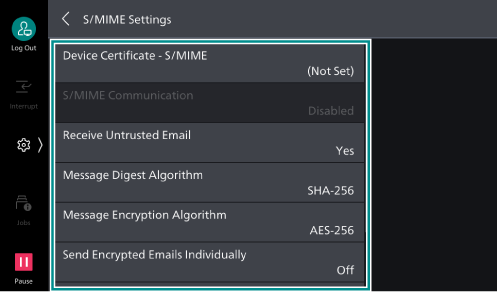 Set when sending and receiving emails and Internet faxes using encryption or signature features.