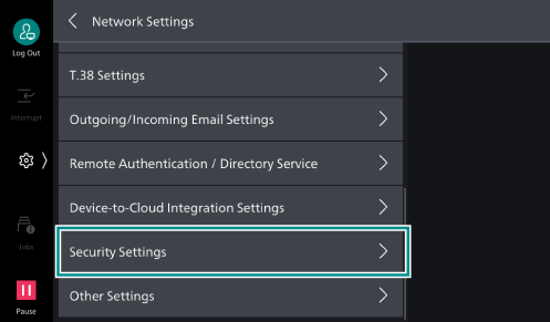- Tap on [Security Settings] on the [Network Settings] screen.
