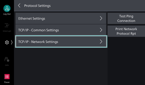 IP - Network Settings (Ethernet 1) ] and [TCP/IP - Network Settings (Ethernet 2) ] are displayed instead of the options above. When setting the IP address, you must select [TCP/IP - Network Settings (Ethernet 1) ].