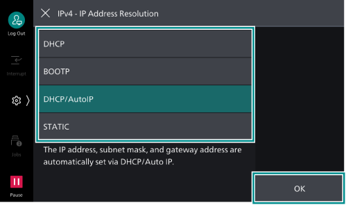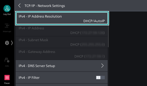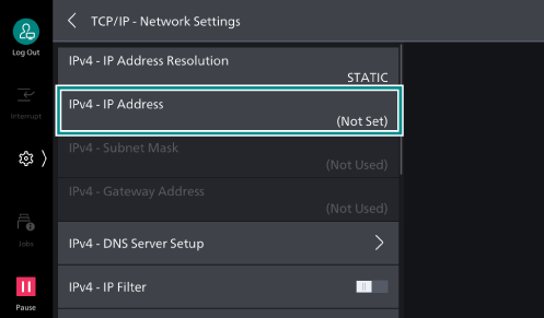 - In the same way as in steps 1 to 2, set [IPv4 - Subnet Mask] and [IPv4 - Gateway Address].