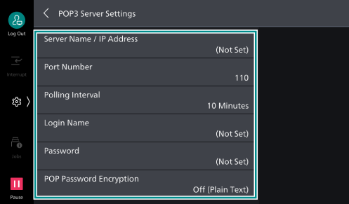 If you selected [SMTP] in [Protocol to Receive Email], you do not need to configure the POP3 settings.