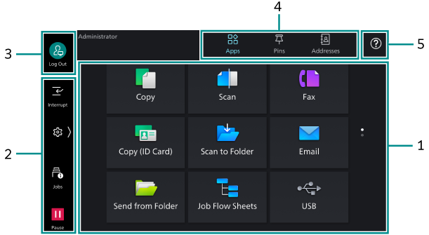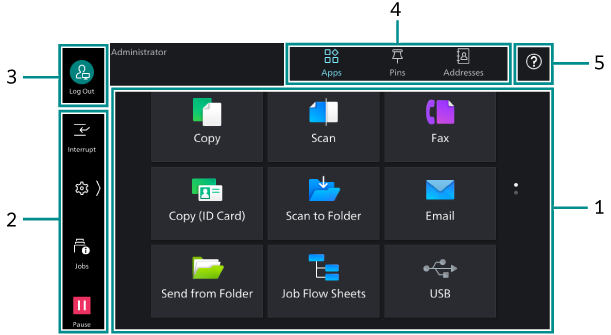 Tap this area to perform the login and logout operations when using the system administration mode or the authentication feature.