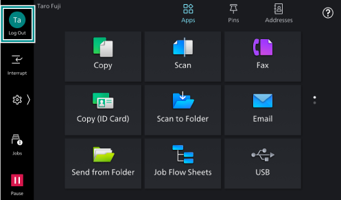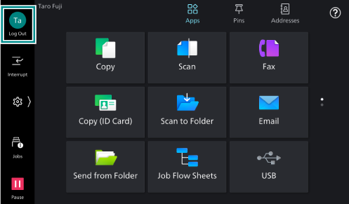 The icon at the login information field changes after logging in to the authentication mode, and the login user name appears on the Home screen and the Control Menu.