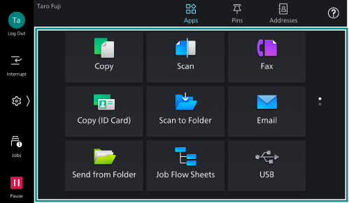 Items appearing on the touch panel display will vary depending on authentication status or apps.