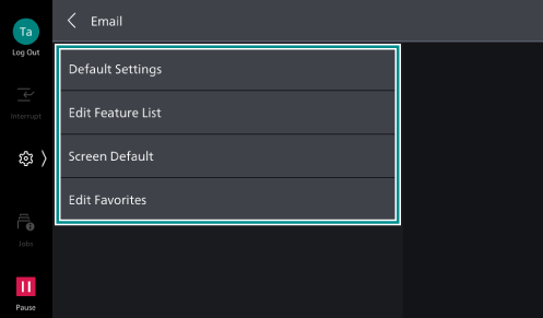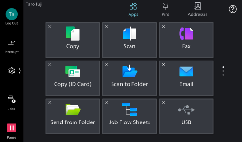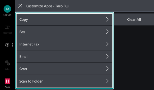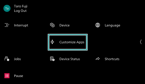 Allows you to customize the screen display of the apps such as copy, fax, or scan.