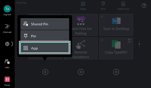 This step’s choices will only appear if one or more Pin buttons have been created. To display a Pin button, tap on [Shared Pin] or [Pin] to select the button to add.