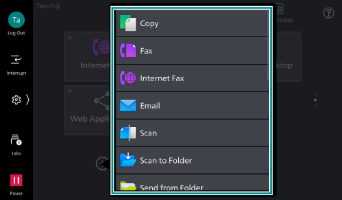 Allows you to customize the displayed feature such as copy, fax or scan.