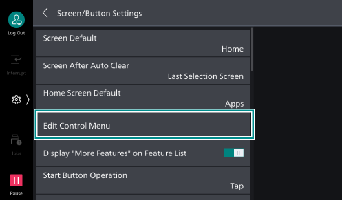- Tap on [Edit Control Menu].