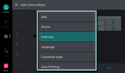 - By referring to the layout on the right side of the screen, tap on the number for the location where you want to position a feature button, and select the target feature to position.
