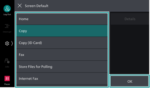 - Select the feature that should appear as the initial screen, and tap on [OK].