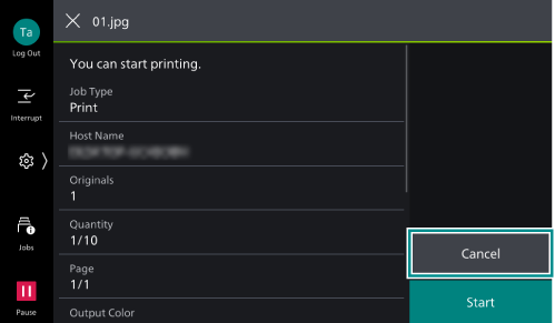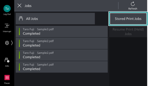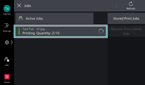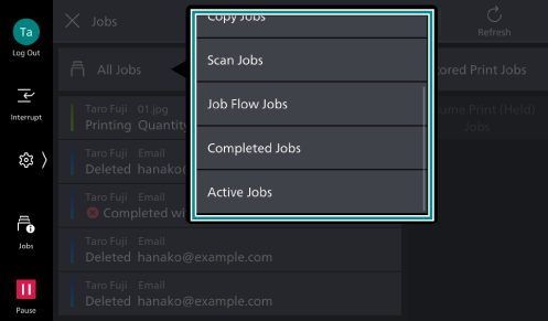 - Tap on [All Jobs], and then tap on [Active Jobs] or [Print Jobs] of the displayed menu.