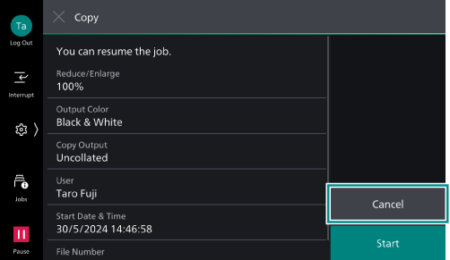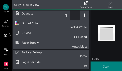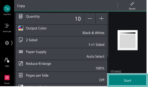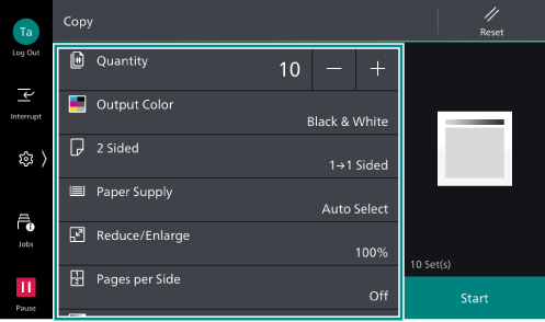 ([Reset]) when turning the setting value to default.To specify the output destination, tap on the tray name in [Output Dest. /