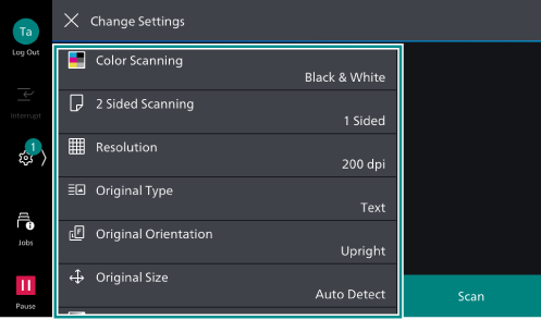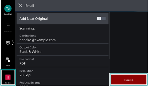 Enabling [Next Original] in the features list also activates continuous scanning.
