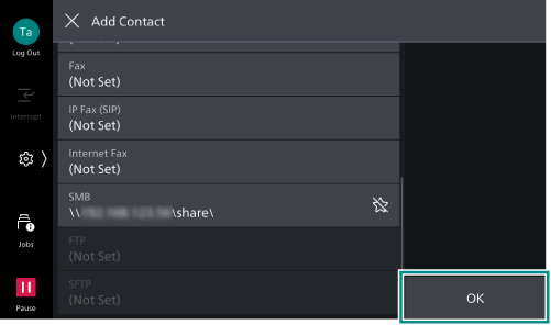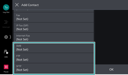 - Depending on the save destination, tap on [SMB], [FTP], or [SFTP].