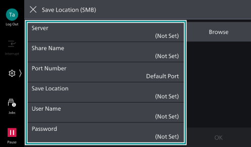 If you tap on [Browse], the hierarchical structure of the names of the save destination servers and folders is displayed so that you can trace through the hierarchy to specify the save destination. If the hierarchical structure is not displayed, enter in the fields directly.