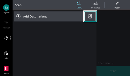 Depending on the settings configured by the system administrator, or on the number of destinations already registered, you may not be able to add destinations. In this case, contact your system administrator about the settings or the maximum allowed number of destinations.