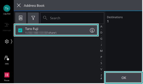 Destinations for saving documents can be registered with the Address Book in advance.