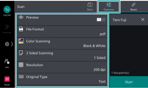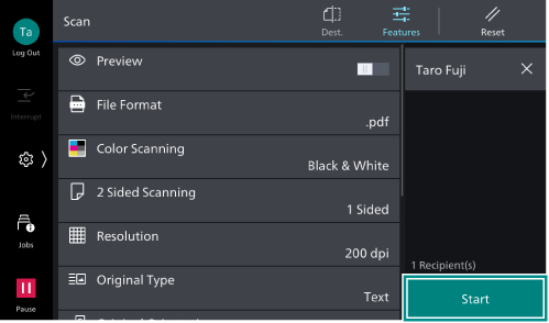 This section explains the steps for transmitting a document by selecting a recipient registered with the Address Book.