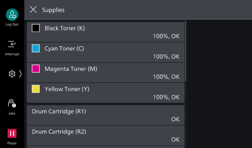 > [Device Status] > [Supplies].