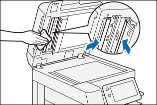 - Close the left cover of the document feeder and make sure that there is no gap on the front or rear of the cover.