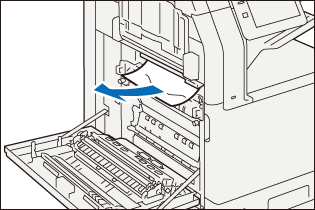 Gently remove the paper to avoid it to be torn. If the paper is torn, remove all the torn pieces, making sure that none remain inside the machine.