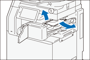 ) and remove the paper that is jammed in the Exit of the Booklet Tray (