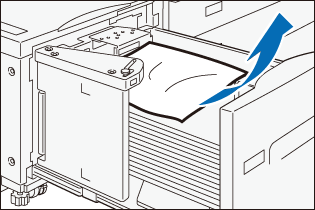 Gently remove the paper to avoid it to be torn. If the paper is torn, remove all the torn pieces, making sure that none remain inside the machine.