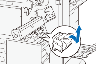 If you open the staple cartridge cover, be sure to remove all bent staples. Not removing bent staples may cause staple jams. Only open the staple cartridge cover when you remove the jammed staples.