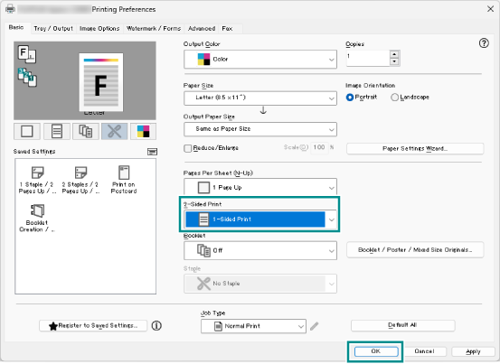 - Select [1-Sided Print] among [2-Sided Print] and click [OK].