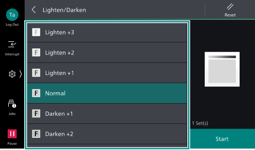 - Adjust the density level.