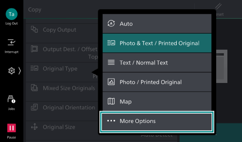 - Tap on [More Features], and then tap on [Original Type] among the displayed menu.