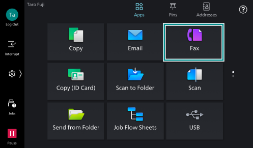 You can refer to the Address Book from an App screen, such as Fax or Scan, and specify the registered recipients.