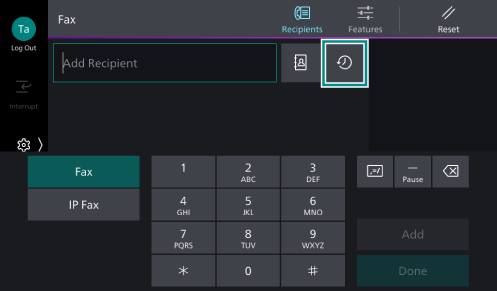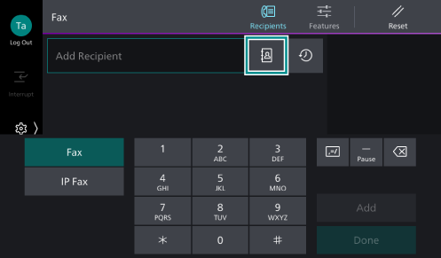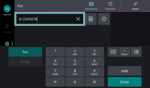 - Specify the recipient by using the Address Book, or by entering a dial number. After completing combining the dial number with the entered number, tap [Done].
