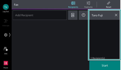 When Multi-Address Fax Transmission is enabled, destinations for Internet Fax can be selected along with destinations for Fax. In this case, it is not possible to transmit to destinations for Internet Fax only on the displayed Fax screen. Make sure you select at least one destination for Fax transmission. This is also applicable when transmitting from the Internet Fax screen.
