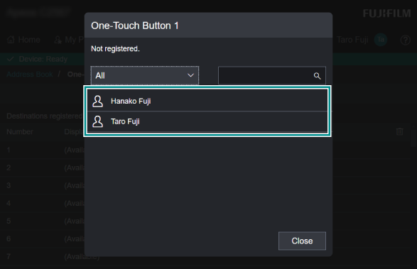 - From the list of destinations, select a destination you want to assign to the selected one-touch button.