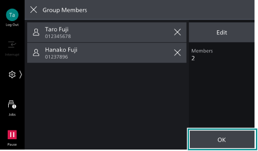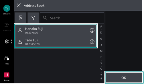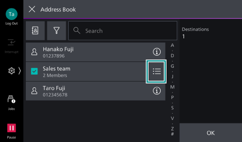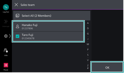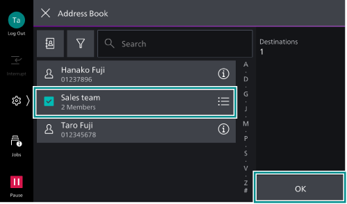 of the recipient group and select the recipients from the displayed list, then tap on [OK].