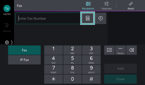 - Tap on [Fax] on the Home screen.