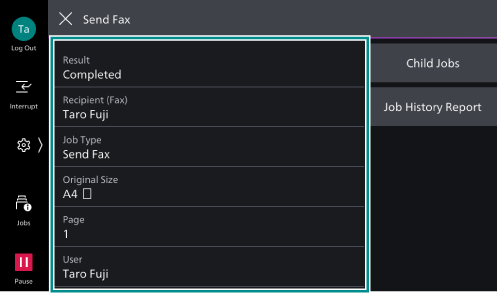 - Tap on[All Jobs], and then tap on [Fax Jobs] among the displayed menu.