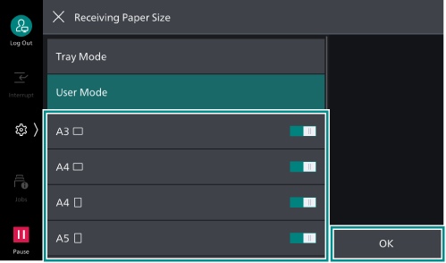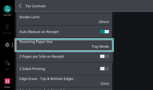 Setting [Receiving Paper Size] allows you to specify the paper type and paper size for printing the received fax ([User Mode]).