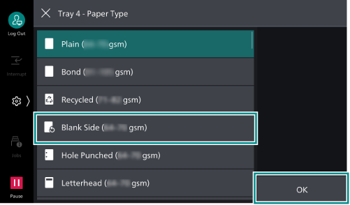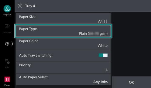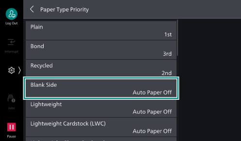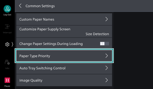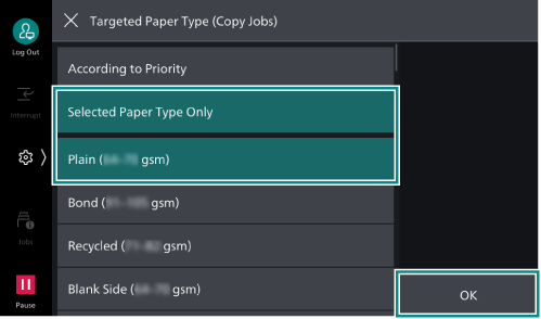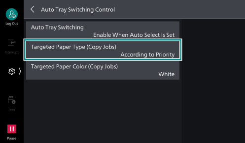 - Tap on [Targeted Paper Type (Copy Jobs)].